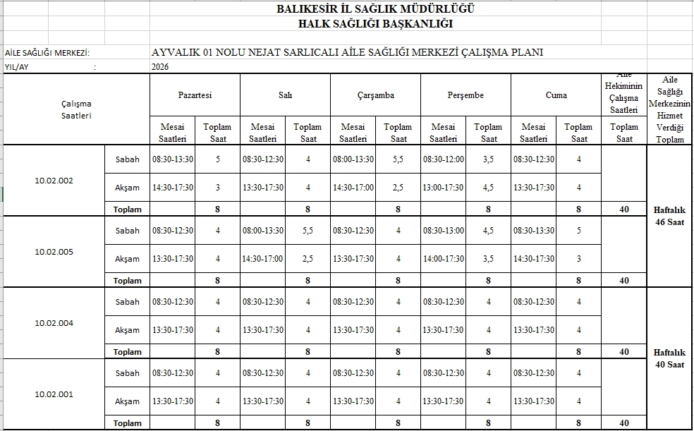 Çalışma Saatlerimiz